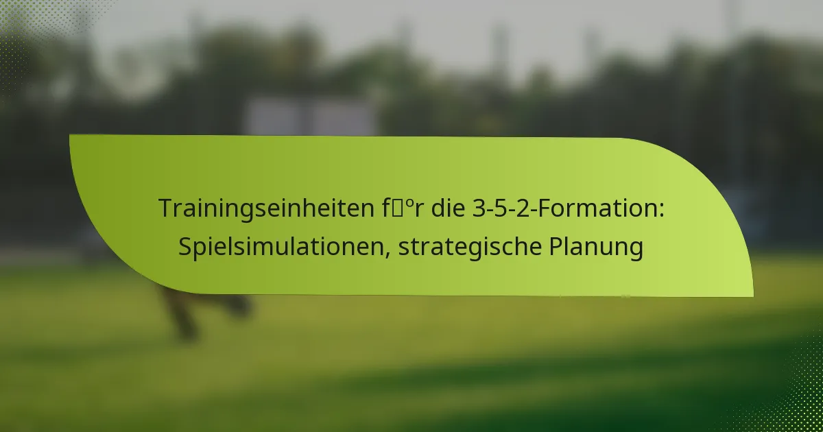 Die 3-5-2-Formation ist ein taktisches Setup im Fußball, das drei Verteidiger, fünf Mittelfeldspieler und zwei Stürmer umfasst und den Schwerpunkt auf die Kontrolle des Mittelfelds und Anpassungsfähigkeit legt. Um Spieler in dieser Formation effektiv zu trainieren, sollten die Übungen darauf abzielen, Fähigkeiten, Teamkohäsion und taktisches Bewusstsein durch realistische Spielszenarien zu verbessern. Diese Simulationen ermöglichen es den Spielern, ihre spezifischen Rollen zu üben und gleichzeitig die Teamdynamik und strategische Anpassungsfähigkeit gegen verschiedene gegnerische Formationen zu verbessern.